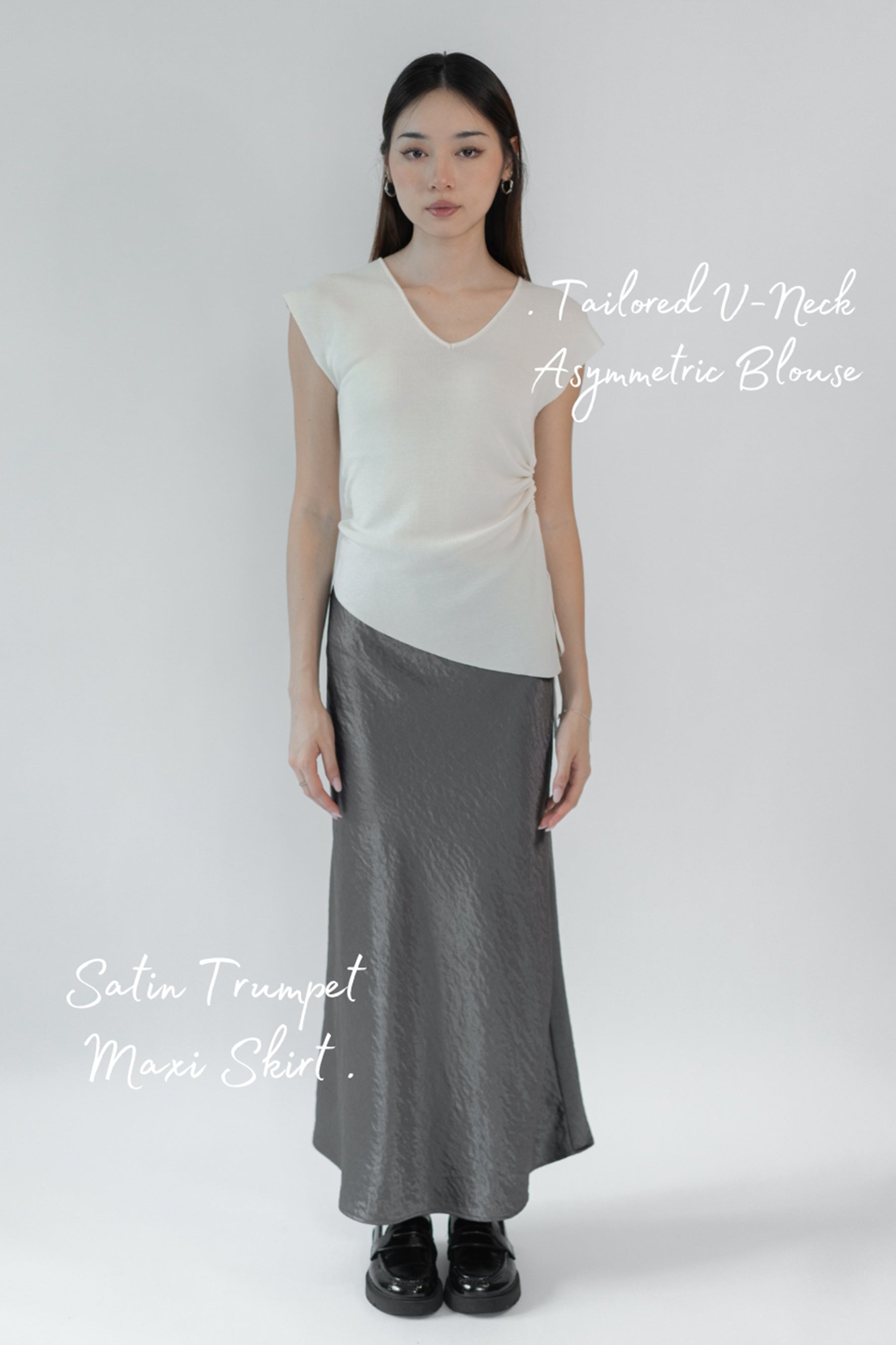 1. TOP [ Tailored V-Neck Asymmetric Blouse ]